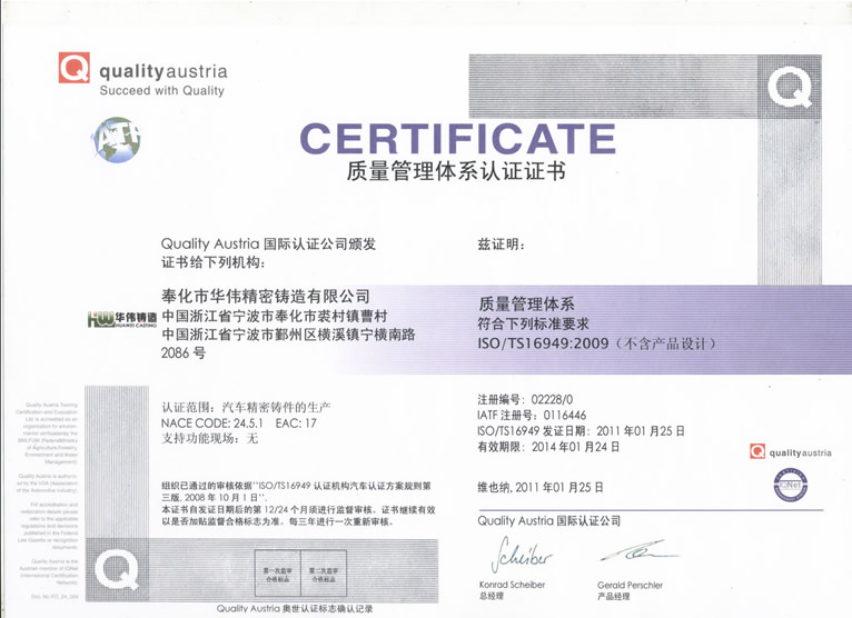 企業(yè)全面推行ISO 9001:2008 和 TS16949:2009質(zhì)量管理體系,過程的監(jiān)視和測量始終貫徹產(chǎn)品的整個(gè)生產(chǎn)的過程,糾正